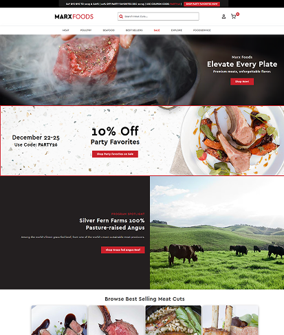 The goal of the Marx Foods redesign was to realign the brand’s visual identity and digital experience with the broader Marx Companies ecosystem while preserving its established market presence. This project focused on bringing Marx Foods’ design language closer to its sister companies to create a more cohesive, recognizable family of brands, while strategically leveraging the strong SEO authority of marxfoods.com to guide qualified users toward the wholesale platform at marxfoodservice.com—improving discoverability, clarity of offerings, and conversion for foodservice customers.